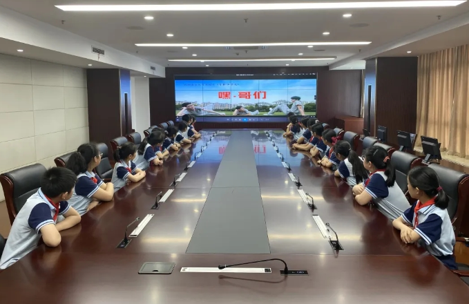 来自丹阳市新区实验小学的20名学生代表来到丹阳市检察院,开启参观之旅。首先,学生代表们走进12309检察服务中心,近距离体验检察机关服务群众的全过程。随后,学生代表们来到检察办案工作区,参观未检办案功能区及讯问、询问室、远程视频室等场所。孩子们在检察官小姐姐的帮助下换上了制服,饶有兴趣地开始了模拟法庭的体验。最后,孩子们来到会议室,观看法治宣传片《嘿,哥们》,并参加互动问答环节。